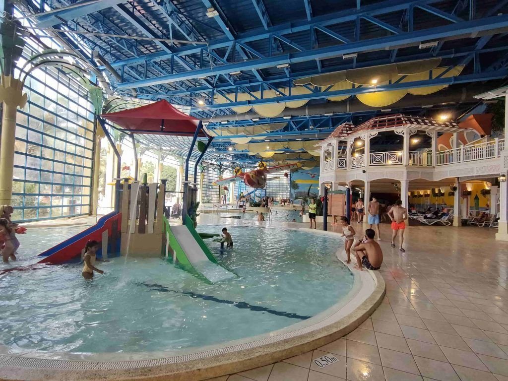 Destaca su piscina de olas, su zona infantil sésamo y su recinto cubierto para los más pequeños.