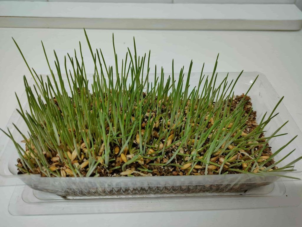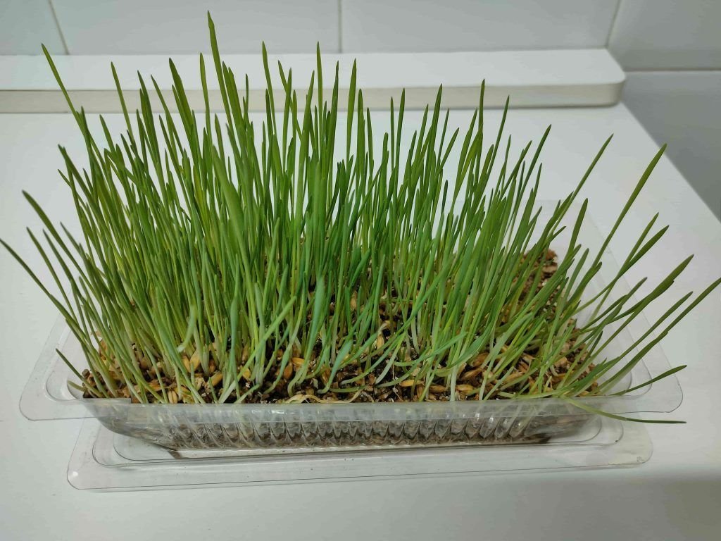 La hierba está inmensa y la hemos tenido que esconder de nuestra gatita. Recordad que hay que tener la hierba en un sitio luminoso y evitar el sol continuo.