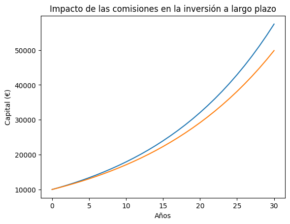 3. ¿Cómo influyen las comisiones en el interés compuesto?